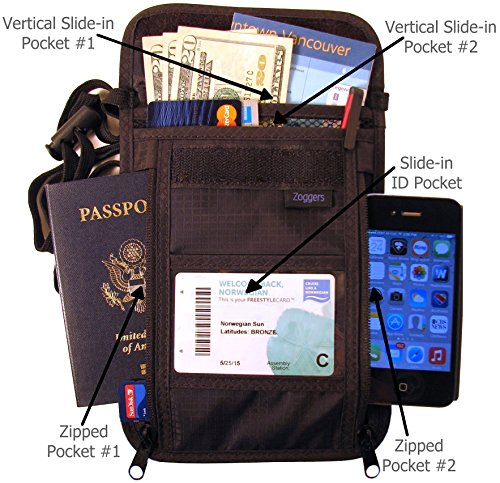 -. Feature : Easy to Clean, Lightweight, Durable, Rip-stop Nylon, Outstanding Quality, Convenient, Subtle Branding / RFID-blocking material is sewn into wallet - No need to wrap credit cards in aluminum foil anymore! / Perfect stash for multiple Passports. Can be worn around the neck, crossbody, under clothes or over a shoulder / Largest Neck Pouch (Full 8" X 6") Great for Cruises, Beachcombing, Business Trips, Skiing, or Walks / 4 separate compartments (2 have Zippers) plus slip-in ID badge holder, Manufacturer Warranty + Satisfaction Guarantee