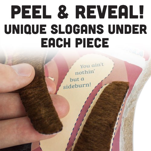 Peel the sideburns off the packaging to reveal a fun slogan with a personality to match