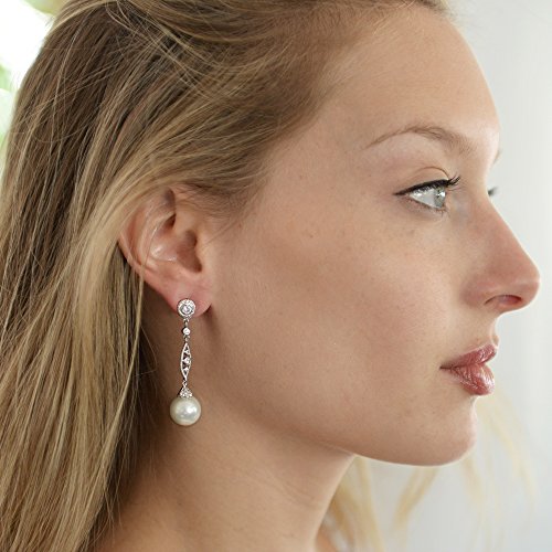 -. Feature : Bezel Set CZ Stud Top with Gorgeous Vintage Filigree and Bold Head-Turning 12mm Soft Cream Glass Pearl Drops (Pearl measures 1/2" Diameter) / Plated in Genuine Platinum-Based Rhodium; 1 7/8" h / Top Quality AAAAA Grade Cubic Zirconia for Brilliant Diamond-like Sparkle / Lifetime Guaranteed; Enduring Luster; 100% Risk Free Purchase; Money-Back if not Delighted / Includes Beautiful Free Gift Box Ideal for Bridal, Wedding, Holiday or Anniversary Gifts