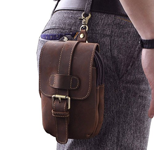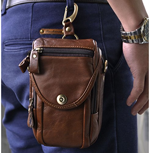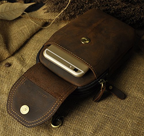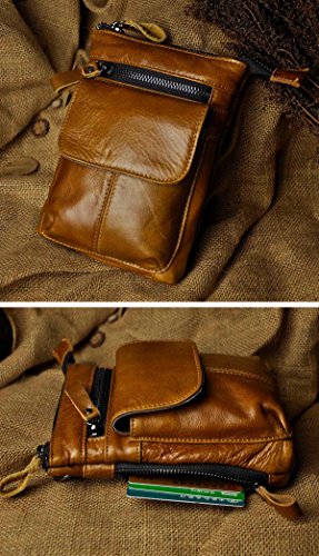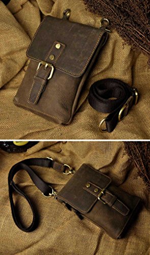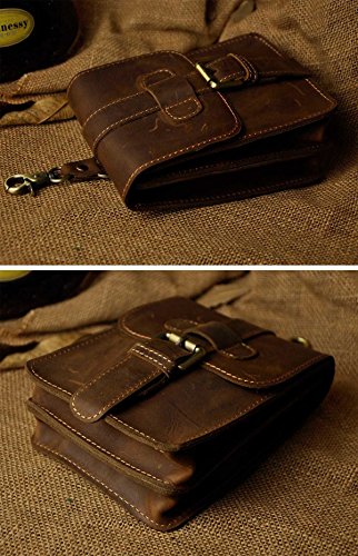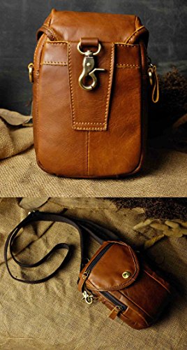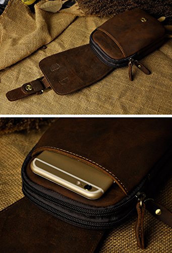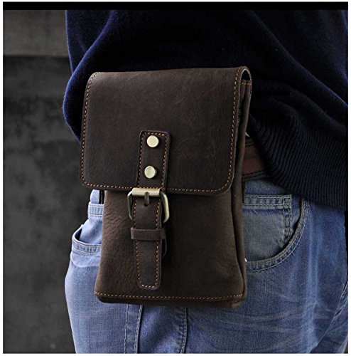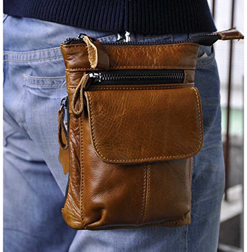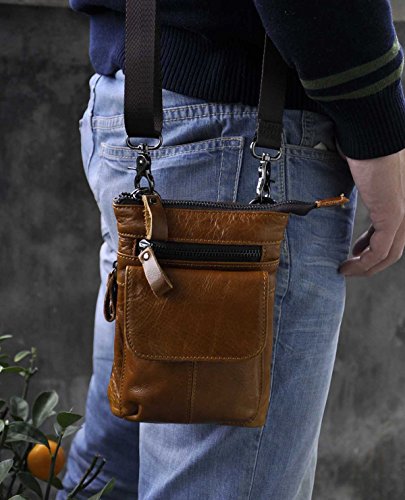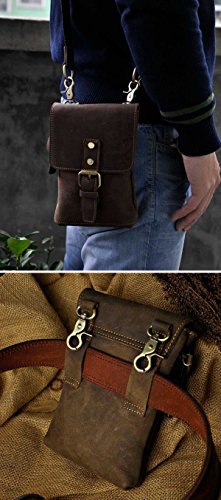 | (Le'aokuu)/Accessories/Luggage, Bags Travel/DIRECT FROM USA/Le'aokuu Mens Genuine Leather Coffee Fanny Small Messenger Shoulder Satchel Wais t Bag Pack |
