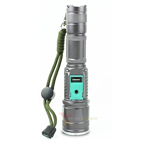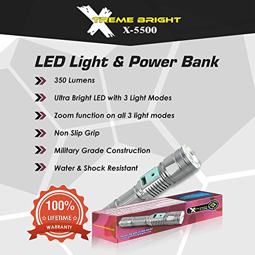 Xtreme Bright X-5500 LED Light and Power Bank - Powerful 350 Lumen Flashlight - Cell Phone Charger, 3 Light Modes with Zoom
