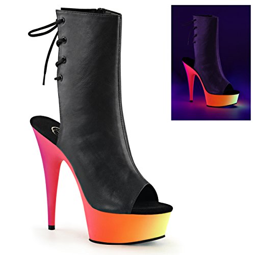 Product DescriptionFeatures. 1.75 in. Platform Ankle Boot.. Comes with Neon UV Reactive BTM.. 6 in. Heel.. Color - Rainbow Black.. Size - 7.0