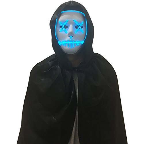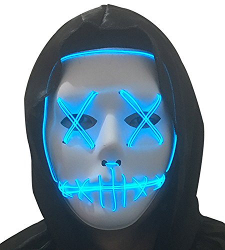 Material: Plastic and EL wire The mask is plastic and includes an elastic band to place around you head in order to hold it in place. It also has openings in the eye, nose and mouth area.