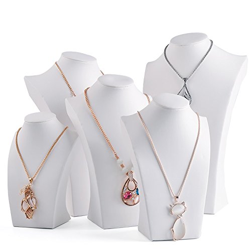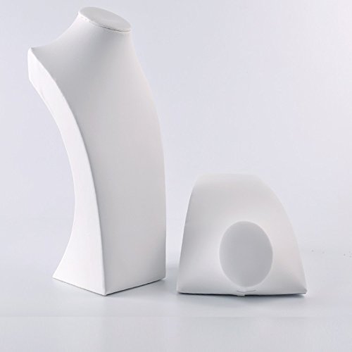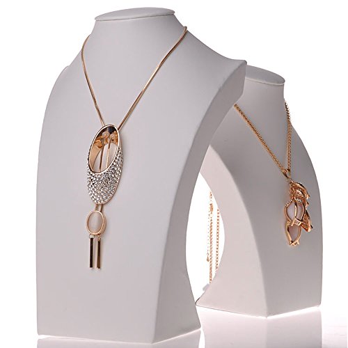 White Leather Necklace Bust Jewelry Display Stand Figure Jewelry Display Stand (H15.2")