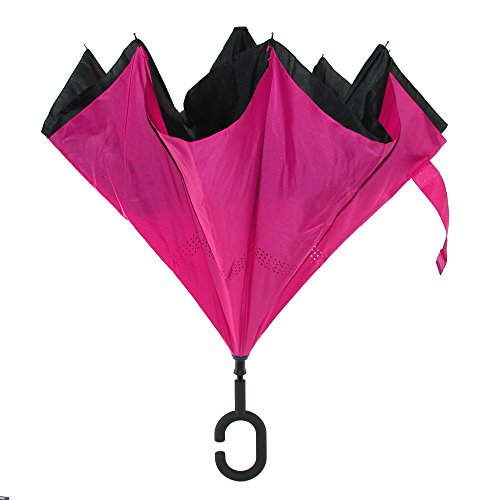 Product Description This umbrella is the perfect solution to getting in and out of your car while keeping the inside of your car, and yourself dry. The runner easily glides up and down, manually opening and closing the canopy to conveniently stay out of the rain. 0