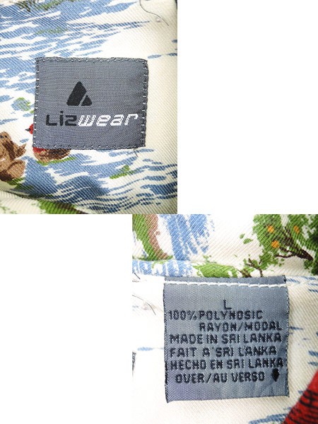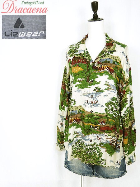Ladies ブランドLiz Wear リズウェア カラー白ベース メール便不可 コンディション★★★ 素材レーヨン 表記サイズL スタッフコメント両袖口、両脇裾に赤い色落ちシミあり。右肘付近、両袖口にシミあり。後、左肩下付近に破れあり。 実寸サイズ 着丈 70 cm 身幅 56.5 cm 肩幅 55 cm 袖丈 54 cm ※ウエスト・ヒップ以外は平置き採寸