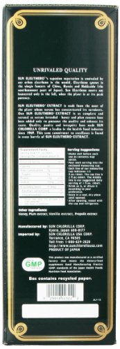 -. Binding : Health and Beauty -. Brand : Sun Chlorella -. Department : mens -. EAN : 0029918023222 -. Feature : Recharge · Restore · Balance - Great Support For Your Body's Natural Defense System / With The Natural Energy You Get From Sun Eleuthero Extract, You Don't Pay The Price Like You Do With Caffeine And Other Stimulants / Can Help Your Body Adapt To Changes In The Environment- Supports A Healthy Heart Rate / One Of The Most Widely Researched Medicinal Herbs- Believed To Help Your Body Cope With Stress More Effectively / Eleuthero Is An Adaptogen, Which Is Defined As A Non-toxic Substance Which Reinforces The Bodys Ability To React To Stress -. IsAdultProduct : 0 -. Label : Sun Chlorella -. Manufacturer : Sun Chlorella -. Model : 029918023222 -. MPN : 684928 -. NumberOfItems : 1 -. PackageQuantity : 1 -. PartNumber : 684928 -. ProductGroup : Health and Beauty -. ProductTypeName : HEALTH_PERSONAL_CARE -. PublicationDate : 2013-03-22 -. Publisher : Sun Chlorella -. ReleaseDate : 2013-04-02 -. Size : 33.3 oz -. Studio : Sun Chlorella -. Title : Sun Chlorella- Sun Eleuthero Nutritional Extract- Supports Healthy Stress Relief & Clarity Of Mind (33.8 Ounce) -. UPC : 029918023222