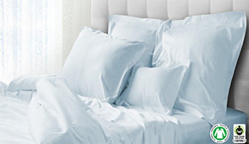 -. Title : Organic Cotton Sheets SOL Organics Luxury Queen Sateen (Blue, White, Ivory) 300 Thread Count