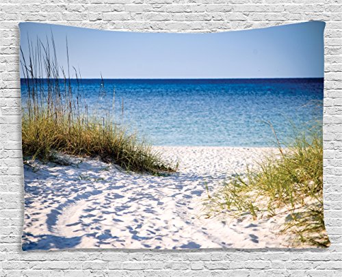Ambesonne Seaside Decor Collection, Path To The Beach Clear Sky Bushes Grasses Windy Sunny Day Peaceful Gulf Of Mexico , Bedroom Living Room Dorm Wall Hanging Tapestry, 80W X 60L Inch