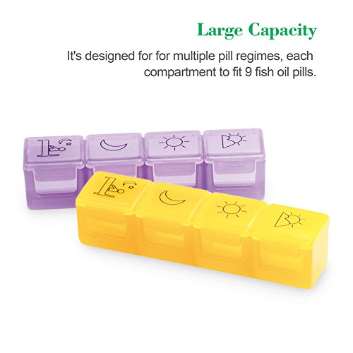 BPA-free Materials. The pillbox is simple yet handy if you have to take medication 4 times a day. There are separate compartments constructed with durable molded BPA-free plastic for each dose, plus it’s got a large capacity for multiple pill regimes