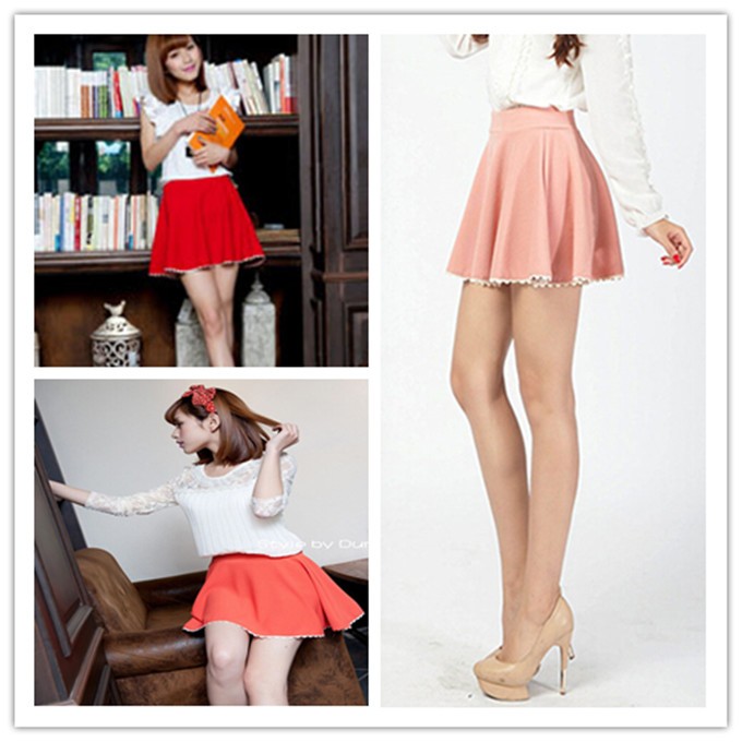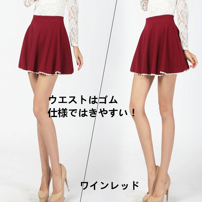 レディースレース付フレアミニスカート 可愛いだけじゃなくヒップまわりの体型カバーも期待できそう 短めの丈が足長効果がバッグン☆
