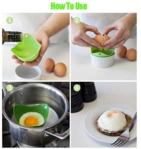 Perfect poached eggs every time with our poached egg maker cups If you've been dreaming of perfect poached eggs in the comfort of your own home then your dream has come true with our affordable, brightly colored egg poaching cups. Forget about an expensive egg poaching pan or poached egg maker. Our silicone poached egg cups can be stored in a drawer for use as and when you need. How to make poached eggs on the stove top 1. Bring a saucepan of water to the boil 2. Spray or brush the inside of your egg pods with non-stick spray or olive oil 3. Crack an egg into each egg pod. Tip: You can crack it into a cup or jug first if it's easier 4. Turn down your saucepan of water to a simmer 5. Carefully place the egg pods into the water, you can use tongs if you want to 6. Place a lid onto your saucepan to keep the steam in 7. Let the simmer for up to 5 minutes or until they're as you like them 8. Carefully remove the egg pods from the water - use tongs to protect your fingers 9. Invert the pods over your plate and the eggs will slide out perfectly shaped and ready to eat BUY NOW and enjoy healthy and tasty poached eggs, easily and mess free in your kitchen 0