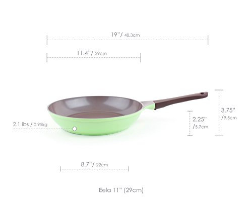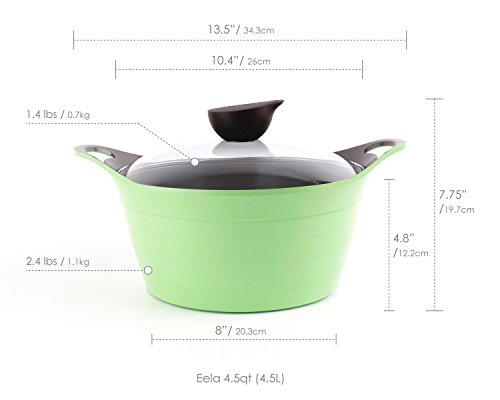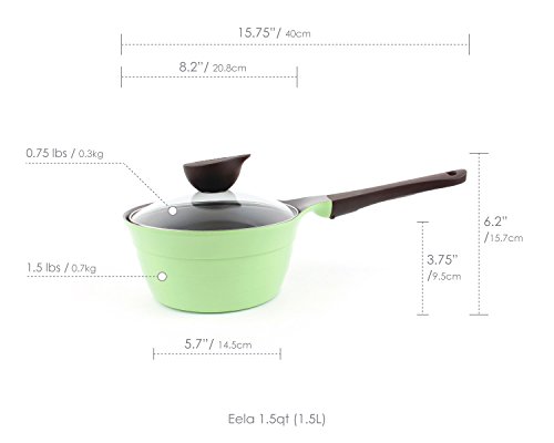 Studio : Neoflam Publisher : Neoflam Binding : Kitchen Product Description Eela, winner of the 2012 iF Product Design Award, possesses a graceful pleated wall, seamlessly-integrated handles, and stylized Bakelite lid knob make it nothing short of functional artistry. Regarded as Neoflam®'s flagship cookware line, Eela is feature rich and extremely lightweight. Eela's cutting edge design and color make it the least boring piece of cookware in your arsenal. Eela's cast aluminum design provides multiple advantages over its competitors; known for its exceptional durability and high heat conductivity, cast aluminum is rising in popularity as a safe and affordable alternative to stainless steel. At just 1/3 the weight of cast iron, cast aluminum's even heat distribution properties allow for fast cooking and reduced energy consumption. Ecolon is Neoflam's innovative nonstick ceramic coating made from all-natural materials. It is applied to the interior and exterior of our cookware, which extends the life of the product and ensures it is easy to use and maintain. The result is a healthier choice for people and the environment. Of course, it does not contain PTFE/PFOA. 0