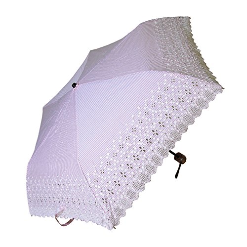 -. Title : 折りたたみ傘 手開き ストライプ スカラ エンブロ 全2色 ピンク 6本骨 50cm UVカット 藤巻きハンドル 530PFS