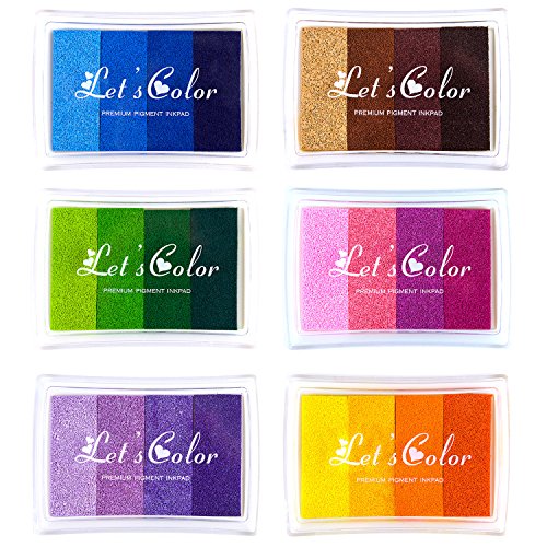 - Colorful: 24 shades of gorgeous colors in pinks, purples, greens, brown, yellows and blues. There are 6 ink pads with four shades in each.