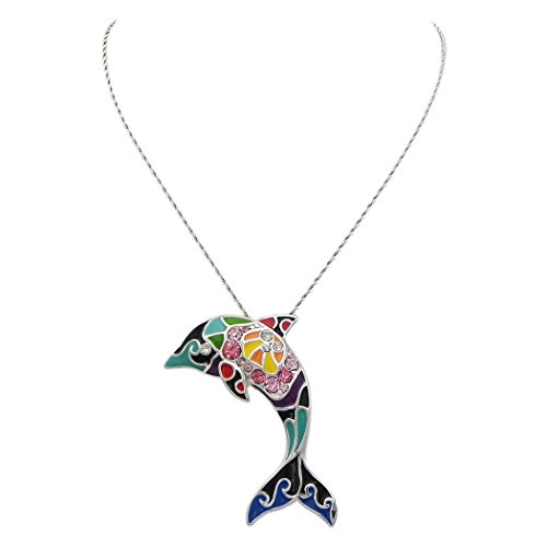-. Feature : Stunning mosaic style, colorful enamel dolphin pin with crystal accents; 2.5" length / Versatile statement piece. Wear as a brooch, or put on a chain as a pendant necklace / Free gift with purchase: stainless steel tarnish free rope chain. 18" plus 2" extender chain / A great accessory for spring, summer or beach vacations / Packaged in a lovely gift box