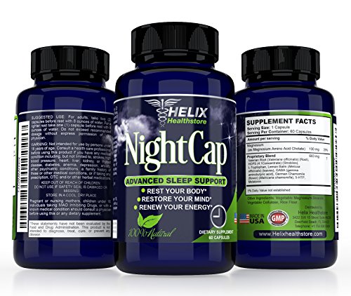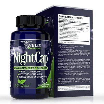 -. Binding : Health and Beauty -. Brand : Helix Healthstore -. EAN : 0646437225724 -. Feature : WAKE UP AND FEEL THE DIFFERENCE: Our Advanced Formula Will Help You Achieve A Deep and Restful Sleep and Wake Up With Renewed Energy and Mental Focus. NightCap Contains a Unique Blend of Herbs and Nutrients to Help You Relax and Fall Asleep Peacefully and Fast Whilst Promoting a Healthy Sleep Cycle. / NO MORE LYING AWAKE IN THE NIGHT: Do You Have Trouble Switching Off and Toss and Turn All Night? Our Powerful Formula Prepares You For Sleep By Helping You Feel Calm And Relaxed and promotes Deeper Sleep helping you sleep longer without interruptions allowing your body to rest and recuperate. No More Waking Up Exhausted with that Groggy Feeling. / BOOST YOUR ENERGY LEVELS: A Good Night's Sleep is Essential For Your Body To Rest and Recharge the Batteries. Lack of Sleep Can Make You Feel Drained Of Energy and Leads to Poor Memory and a Compromised Immune System. Our Extra Strength Natural Sleeping Pills Help You To Fall Asleep, Stay Asleep and Wake Up Energised and Rejuvenated. / 100% NATURAL INGREDIENTS: Unlike Prescription Sleep Medication, Night Cap is an Over the Counter Premium Blend of All Natural and Safe, Drug Free, Non Habit Forming Ingredients including Magnesium, Valerian Root Extract, Hops, L-Tryptophan, Lemon Balm, GABA,German Chamomile and 5-HTP. Proudly Made in the USA in GMP Certified Facilities. We Offer You The Highest Quality and Most Effective Natural Sleep Support Available Now. / A GOOD NIGHT'S SLEEP OR YOUR MONEY BACK: We Are So Confident That NightCap Will Give You The Best Night's Sleep Of Your Life That We Offer You Our Rock Solid 100% No Questions Asked Product Guarantee. Try NightCap Now Risk Free! -. IsAdultProduct : 0 -. Label : Helix Healthstore -. Manufacturer : Helix Healthstore -. ProductGroup : Health and Beauty -. ProductTypeName : HEALTH_PERSONAL_CARE -. Publisher : Helix Healthstore -. Studio : Helix Healthstore -. Title : BEST Natural Sleep Aid Supplement For Adults. Advanced Formula for Deep Sleep & Restored Energy. 60 Capsules With Valerian Root & Melatonin. Non-Habit Forming OTC Herbal Sleeping Pills. Made in USA. -. UPC : 646437225724