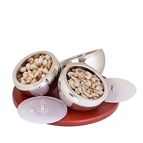 Style: the revolving stand has three circular depressions, wherein the Kosma Nut Bowls can be positioned. The dual wall construction provides an insulating effect to maintain food temperature. The bowl set adds grace to any table tops and sofa table