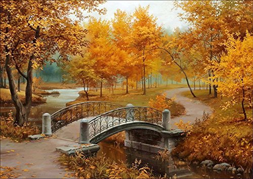 DIY 5D Diamond Painting by Number Kit, Bridge Scenery Crystal Rhinestone Embroidery Cross Stitch Arts Craft Supply Canvas Wall Decor