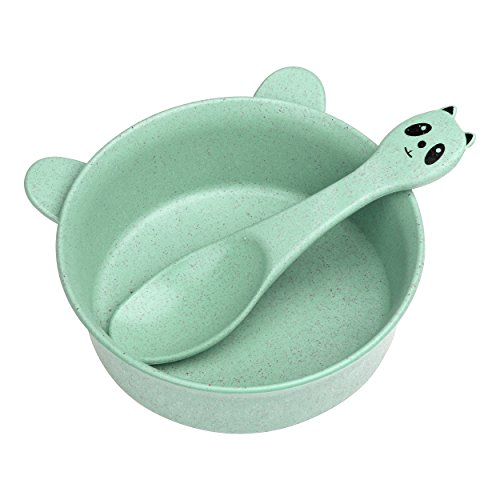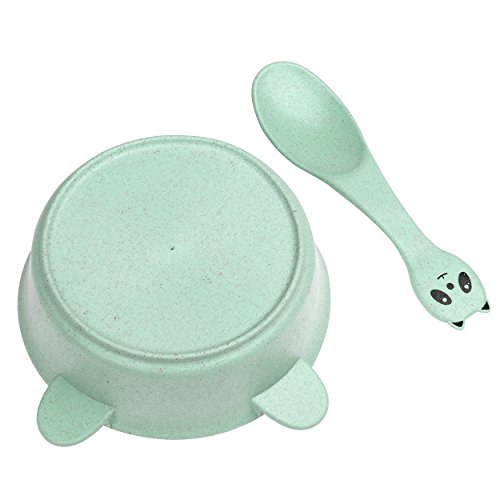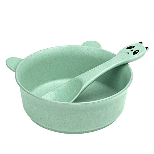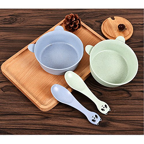 *Name: Wheat Panda Bowl Set; *Material: Food PP Wheat Straw; *Size: Bowl (12 * 9.5 * 4.5cm), spoon (13.5 * 3 * 2.5cm); *Weight: Bowl 70g, Spoon 15g; *Microwave: Available; *Suitable temperature: -20 ? to -120 ?; *Color: Nordic four-color (Pink / Blue / Green / Yellow); *Pattern: Cartoon; *Applicable to: Children; *Number of packages: Bowl spoon set.