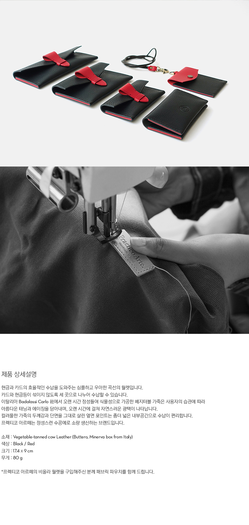 | 현금과 카드의 효율적인 수납을 도와주는 심플하고 우아한 곡선의 월렛입니다. 카드와 현금등이 섞이지 않도록 세 곳으로 나누어 수납할 수 있습니다. 이탈리아 Badalassi Carlo 社에서 오랜 시간 정성들여 식물성으로 가공한 베지터블 가죽은 사용자의 습관에 따라 아름다운 태닝과 에이징을 담아내며, 오랜 시간에 걸쳐 자연스러운 광택이 나타납니다. 컬러풀한 가죽의 두께감과 단면을 그대로 살린 옆면 포인트는 좀더 넓은 내부공간으로 수납이 편리합니다. 프렉티코 아르떼는 정성스런 수공예로 소량 생산하는 브랜드입니다. |