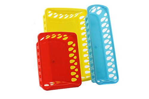 Plastic Storage Trays Baskets Organization Bundle, 3 Sizes and 3 colors assorted