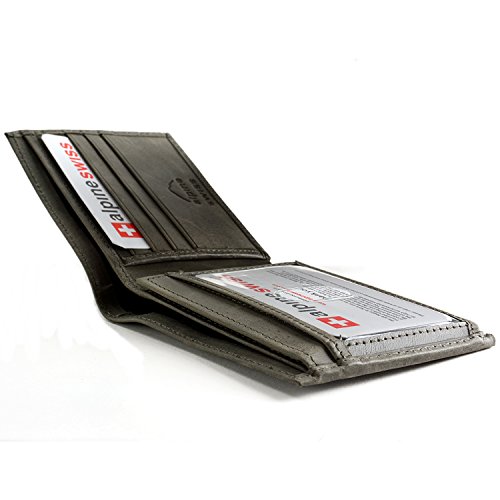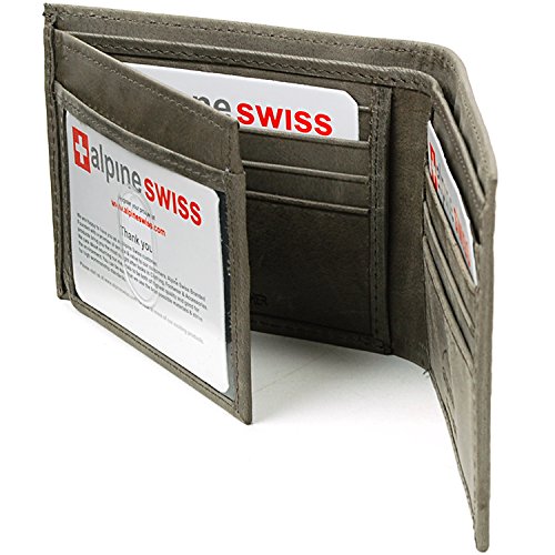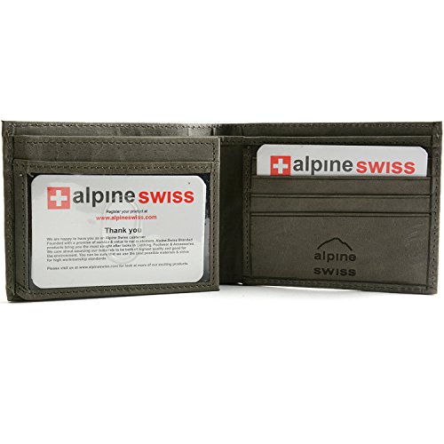 Alpine Swiss Men's Genuine Leather Wallet Slim Flip-out Bifold Grey