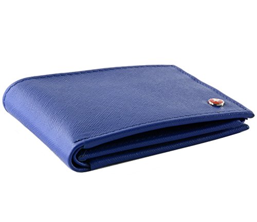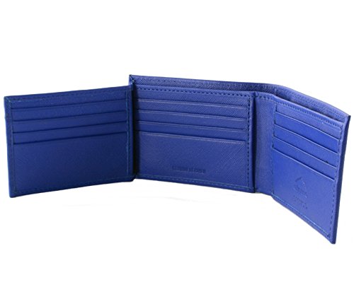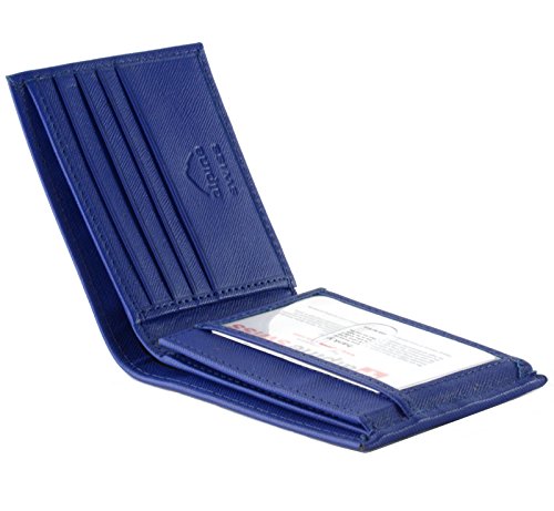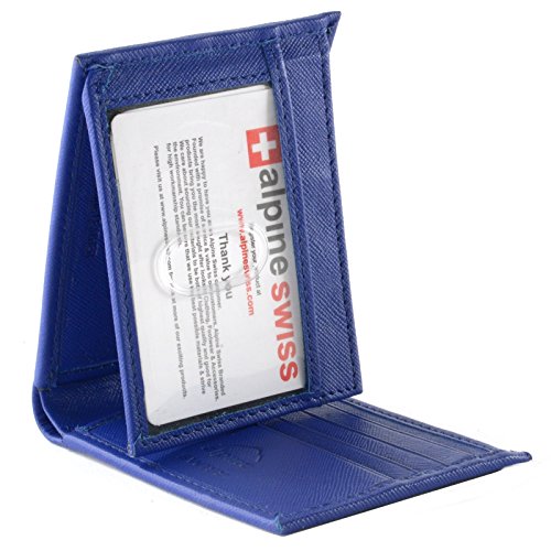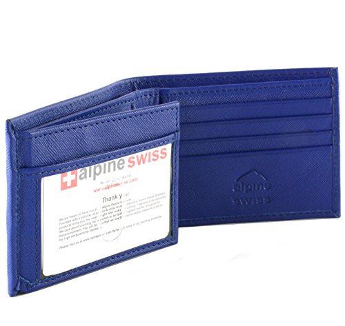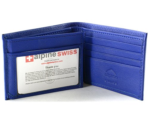 Alpine Swiss Men's Genuine Leather Wallet Slim Flip-out Bifold Crosshatch Blue