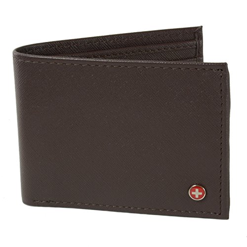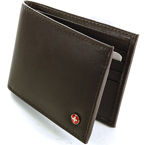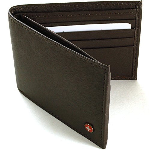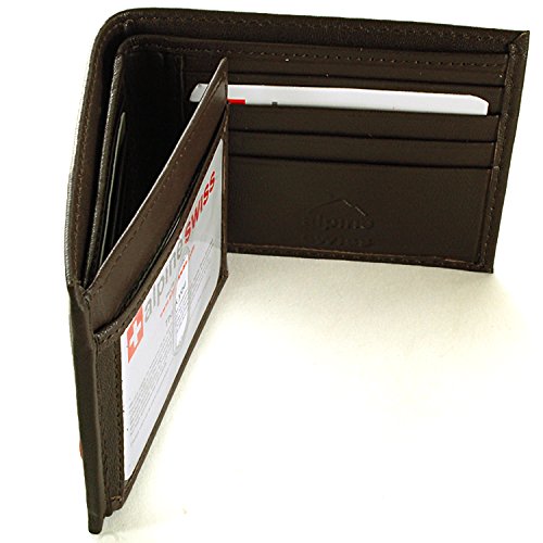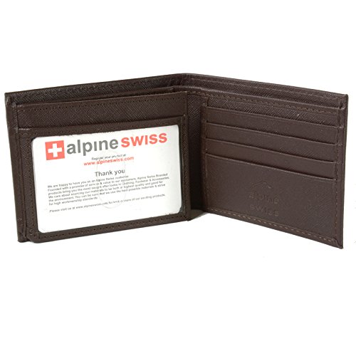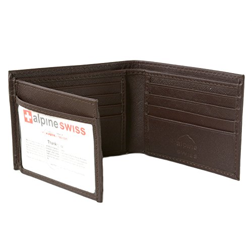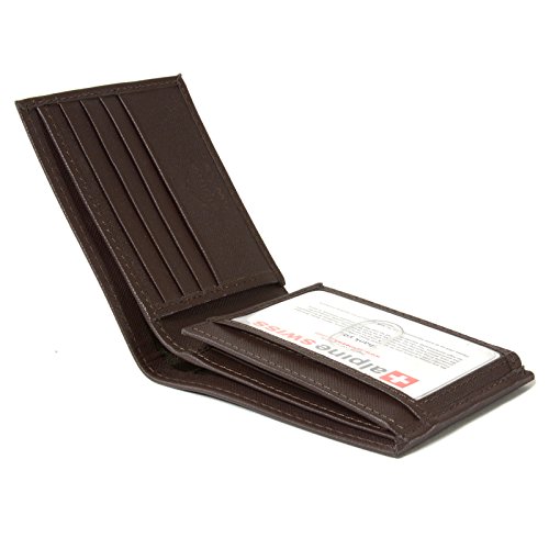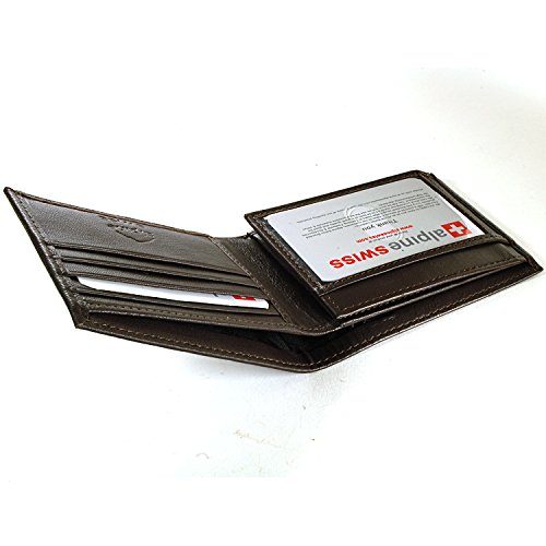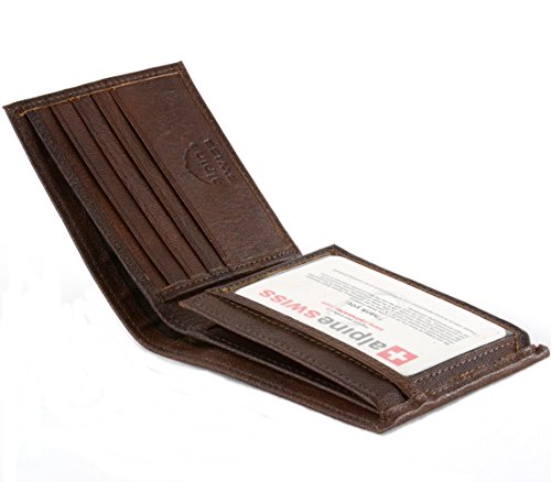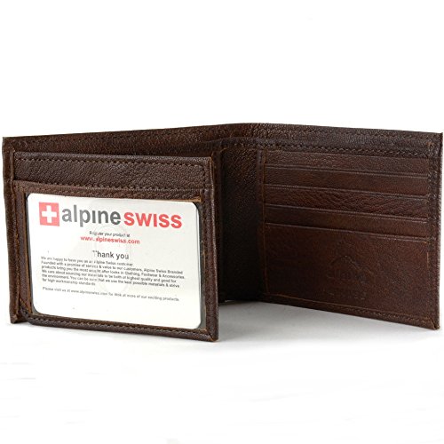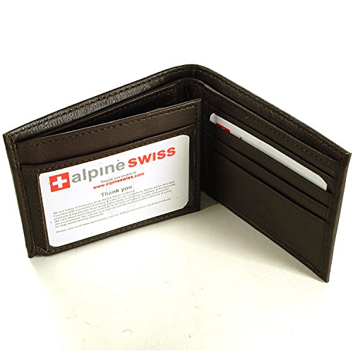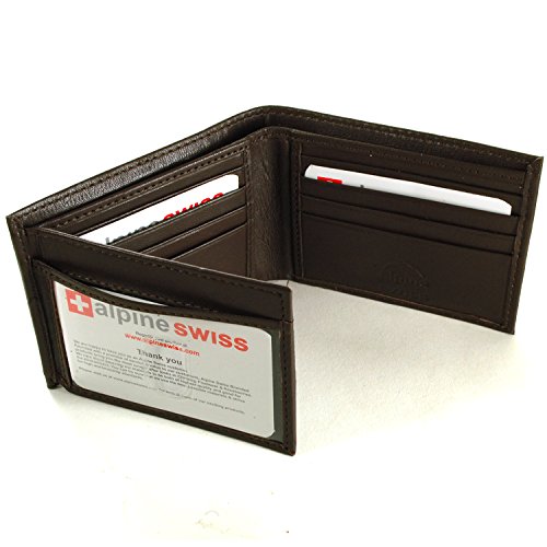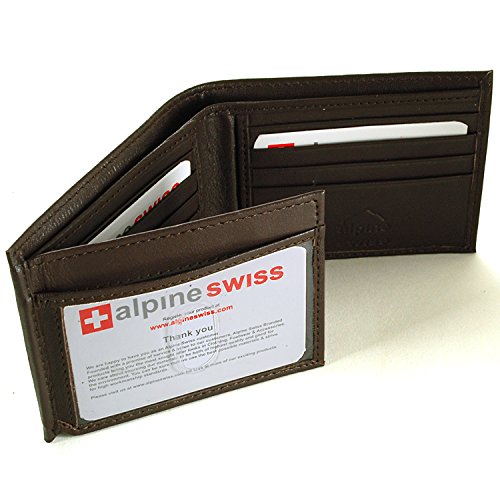 Alpine Swiss Men's Genuine Leather Wallet Slim Flip-out Bifold Dark Brown