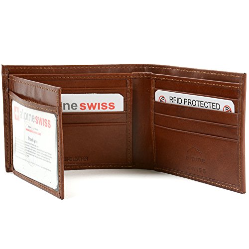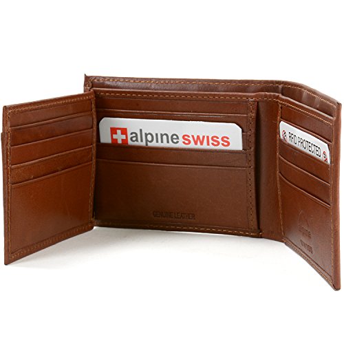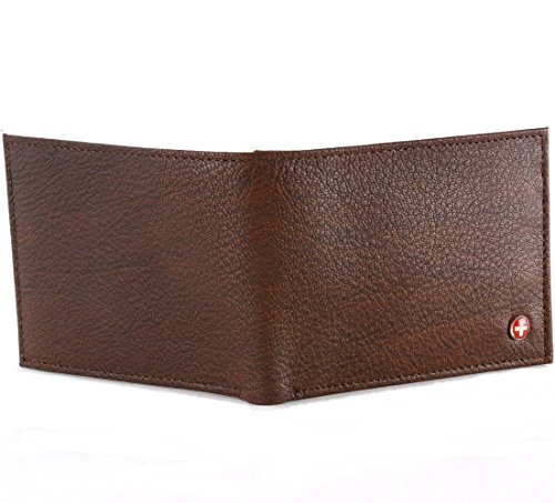Alpine Swiss Men's Genuine Leather Wallet Slim Flip-out Bifold Brown