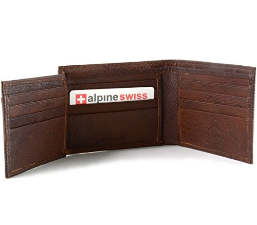 Alpine Swiss Men's Genuine Leather Wallet Slim Flip-out Bifold Antique Brown