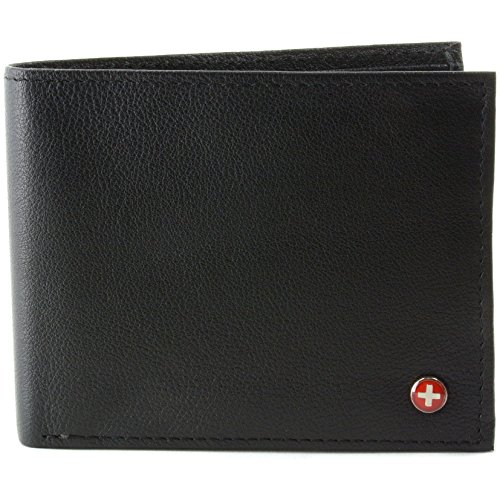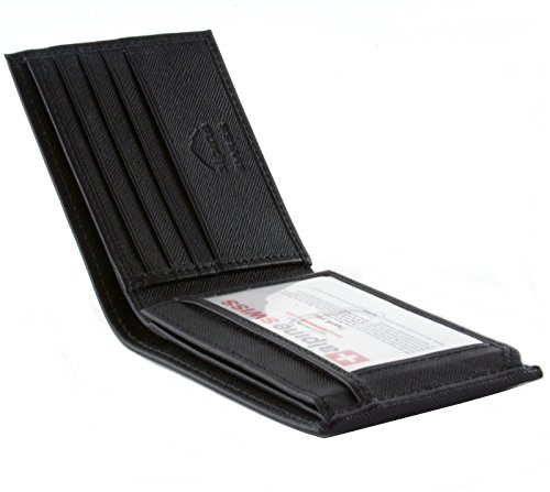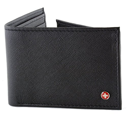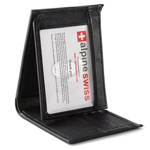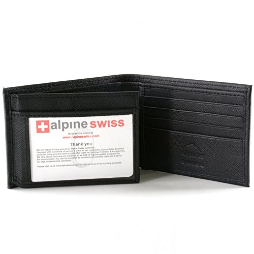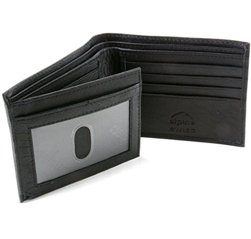 Alpine Swiss Men's Genuine Leather Wallet Slim Flip-out Bifold Black