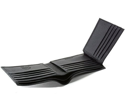 Alpine Swiss Mens Leather Flipout ID Wallet Bifold Black Wide 2 Bill Sections