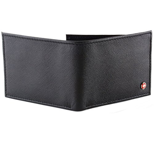 Alpine Swiss Men's Genuine Leather Wallet Slim Flip-out Bifold Crosshatch Black