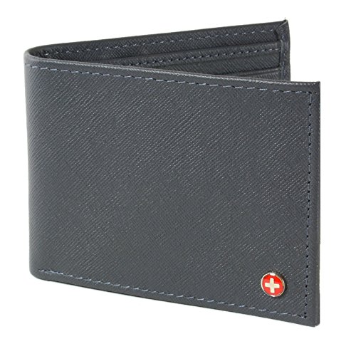 Alpine Swiss Men's Genuine Leather Wallet Slim Flip-out Bifold, Crosshatch Gray