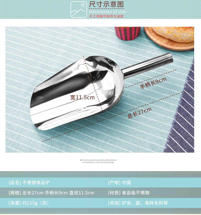 说明:11寸加厚不锈钢冰铲 冰粒铲 面铲 实用小铲子 好质量耐用
