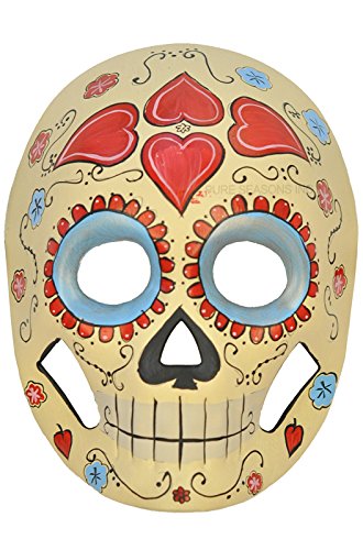 -. Title : Yellow and Skyblue Mexican Sugar Skull Hand-painted Paper Mache Mask