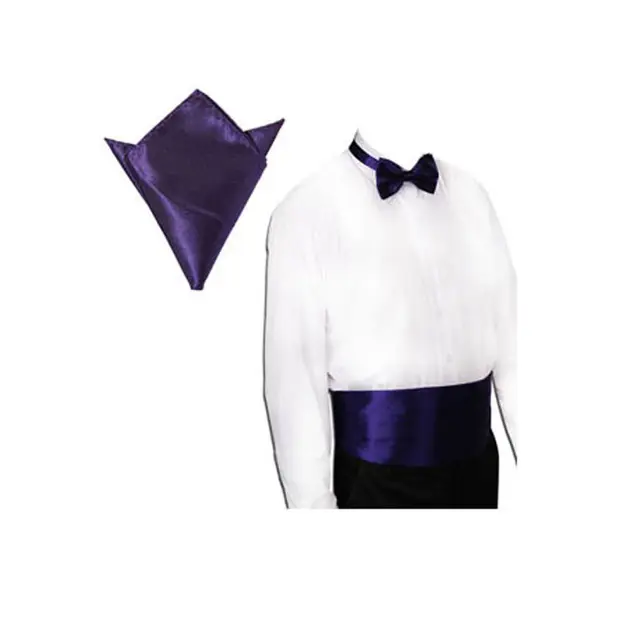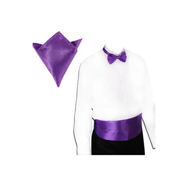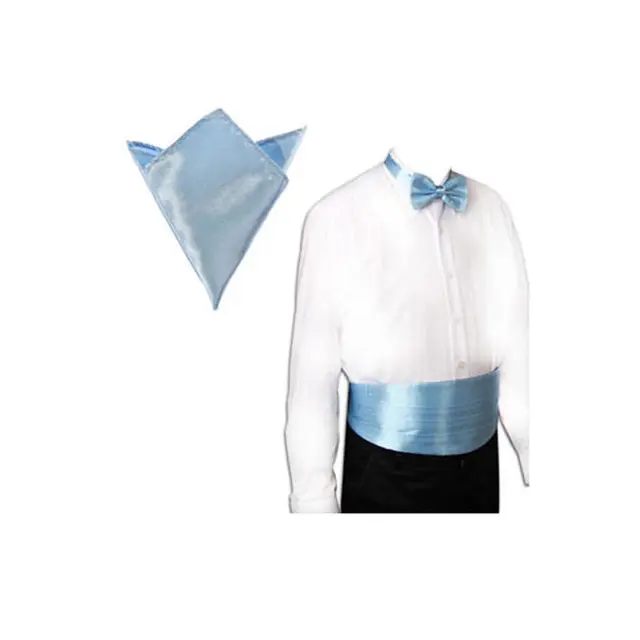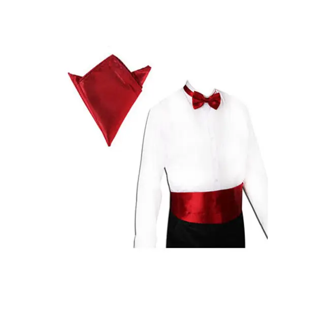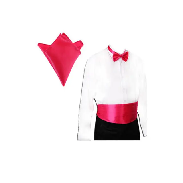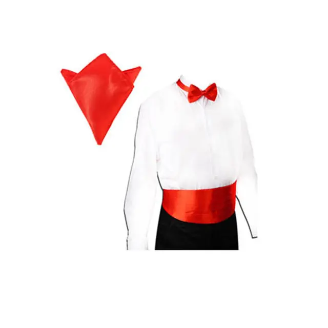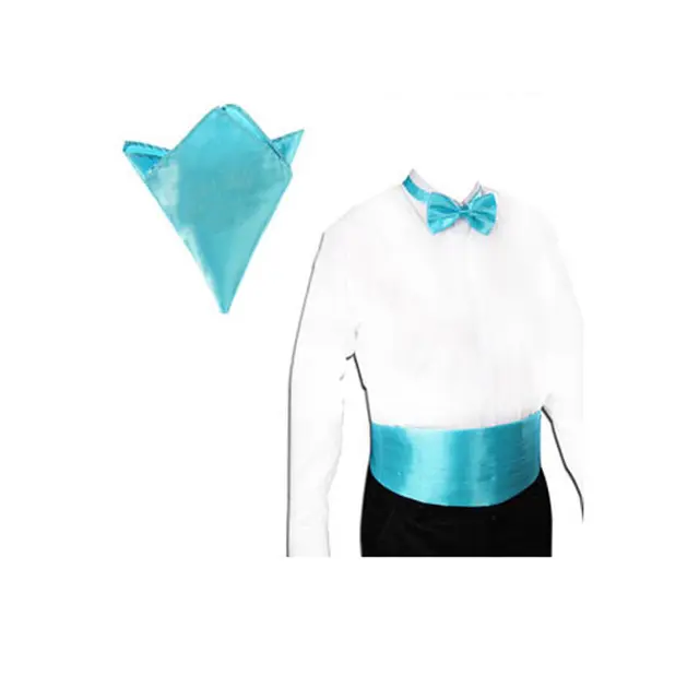 | [해외]새틴 턱시도 커머 밴드 + 나비 넥타이 + 손수건 세트 파티 웨딩 20 색 |