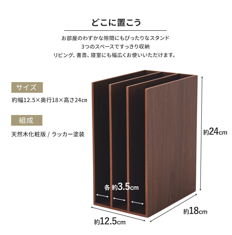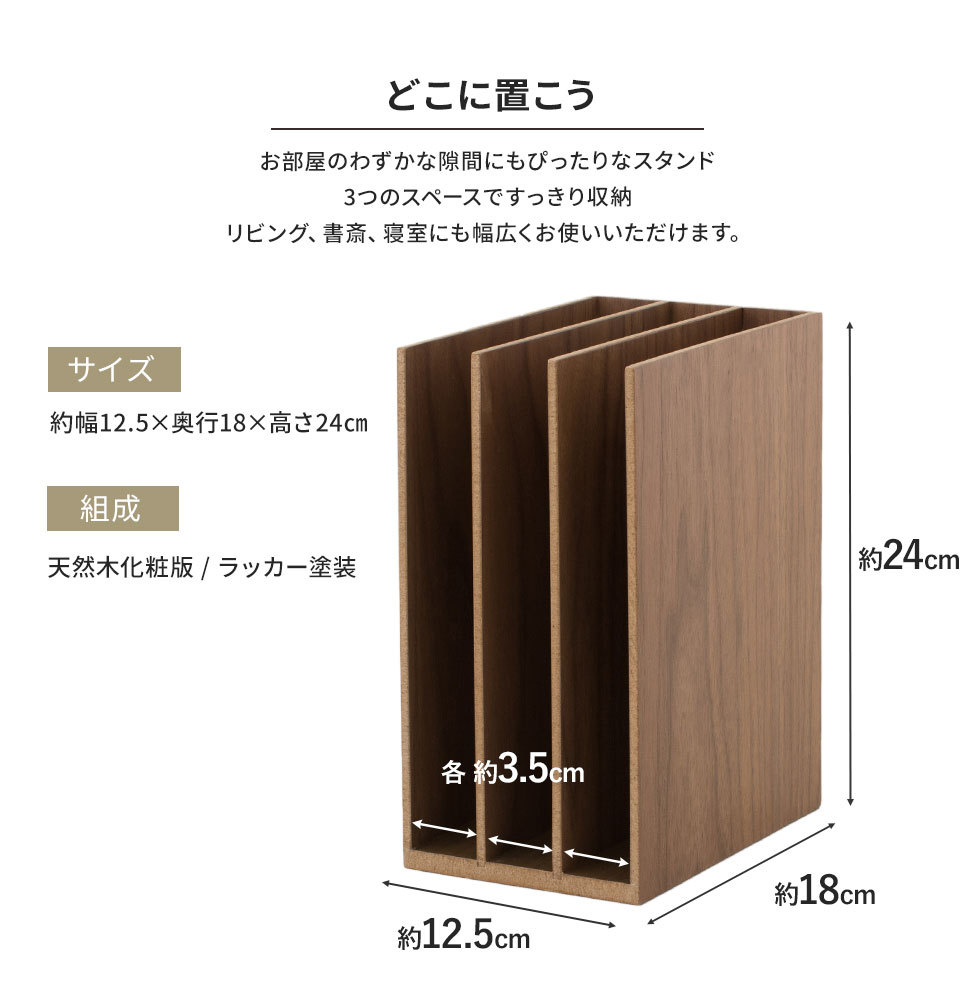 品名 【EMOORの木製小物シリーズ】 ブックスタンド 3連