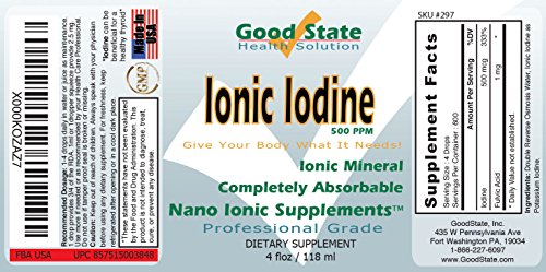-. Title : Good State - Liquid ionic iodine - 4 drops equals 500 mcg per serving - 600 total servings - 4 ounces