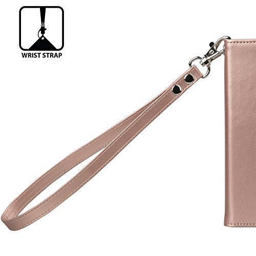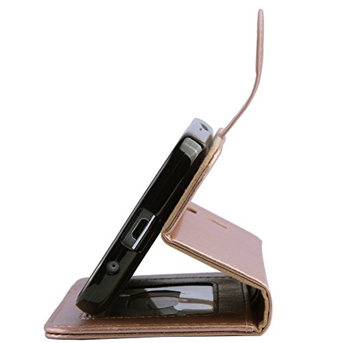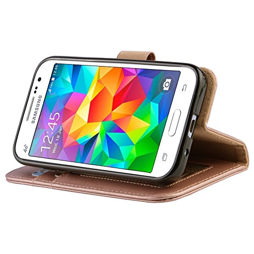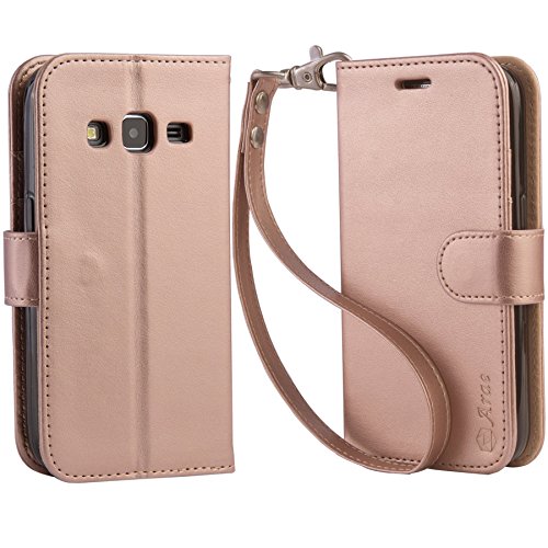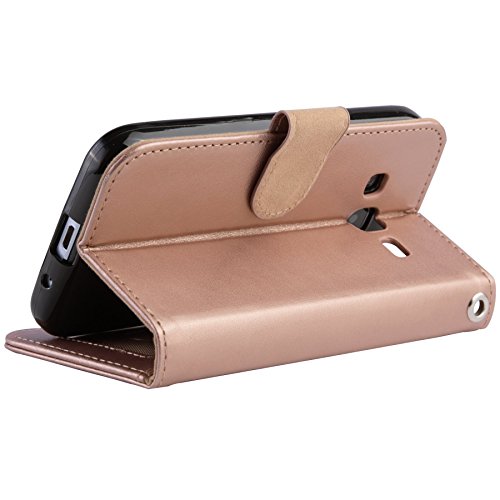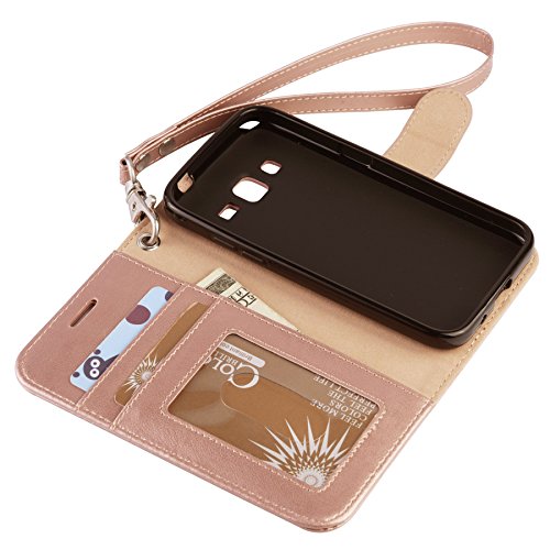 Core Prime Case, Arae Samsung Galaxy Core Prime wallet case,[Wrist Strap] Flip Folio [Kickstand Feature] PU leather wallet case with ID&Credit Card Pockets For Samsung Galaxy Core Prime (rosegold)