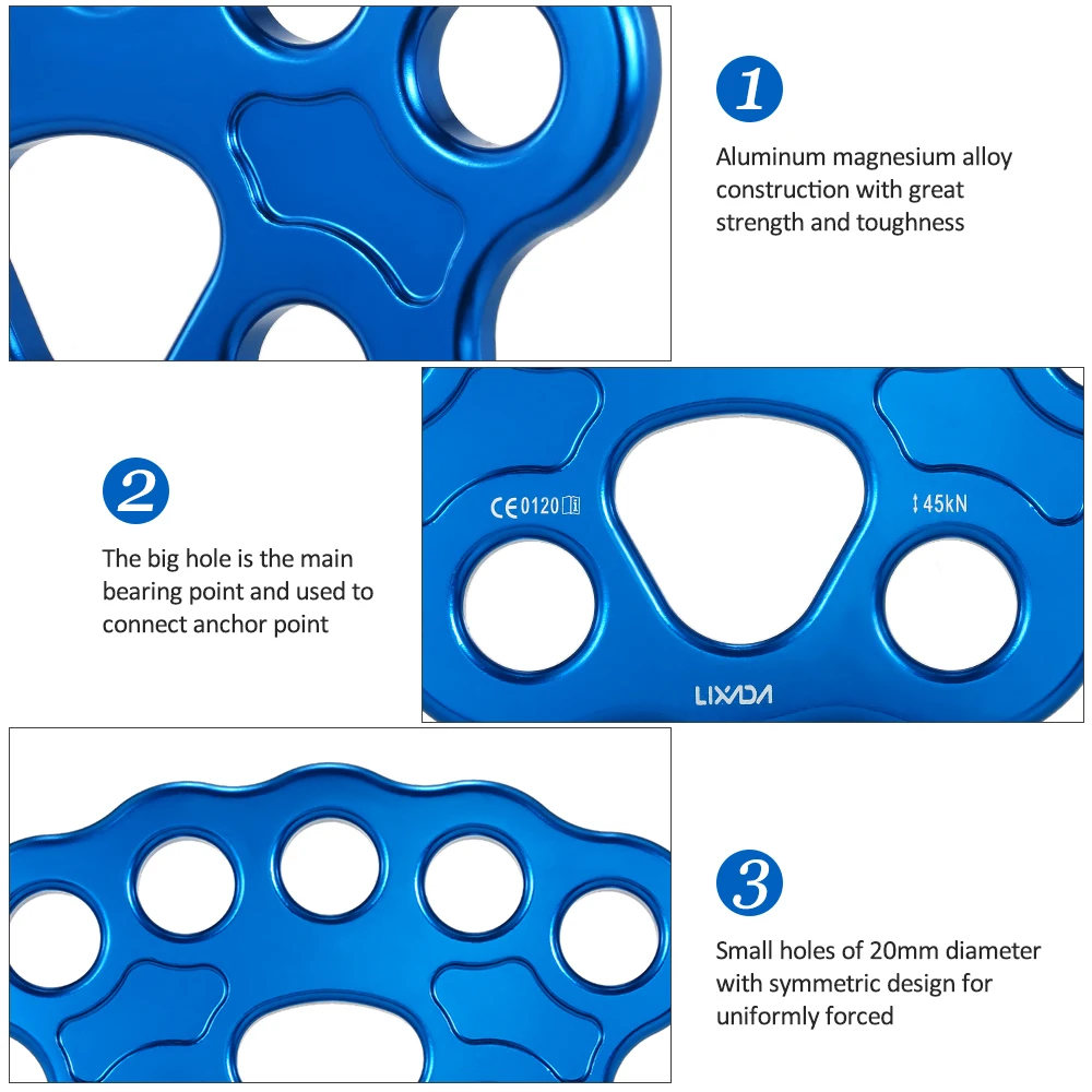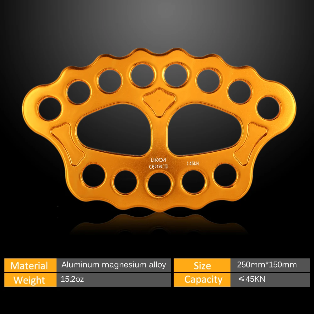 Lixida Outdoor 8/15 Holes Paw Rigging Plate 45KN Rescue Rock Climbing Mountaineering Equipment Multi Anchor Point Connector Gear