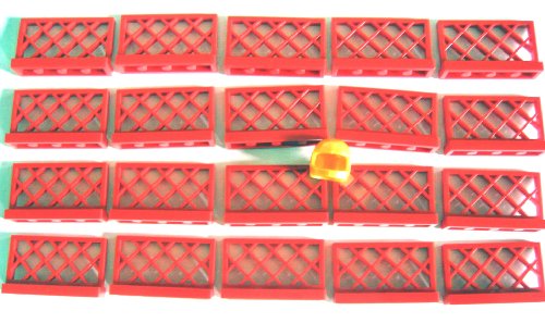 -. Title : L.E.G.O City - 20 Classic Fences Red (3185) - With Additional Golden Helmet - Loose Parts