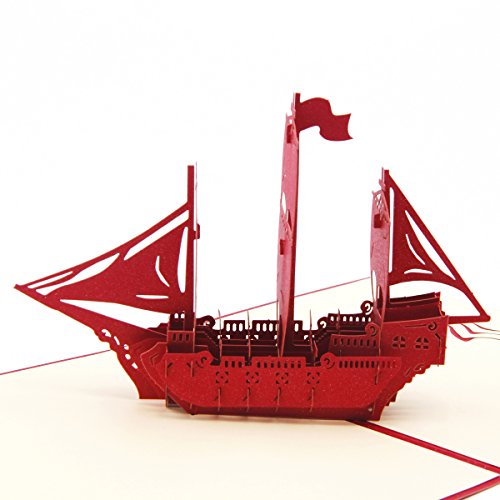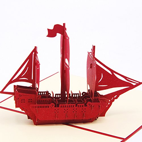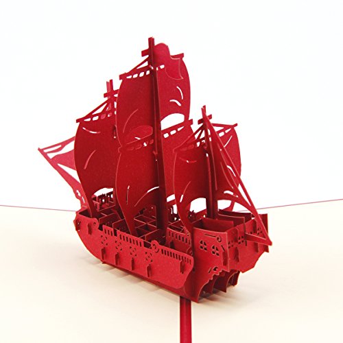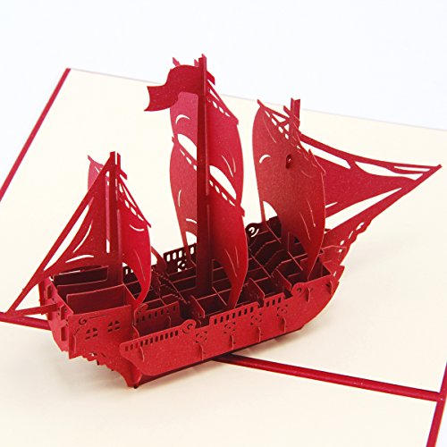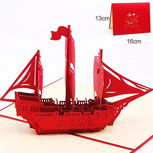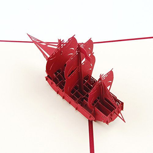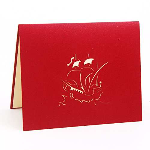 Paper Spiritz Sailing Ship 3D Pop up Greeting Card Postcard Matching Envelope Laser Cut Handmade Happy New Year Birthday Post Card Spring Festival Valentine's Day Gift(Red, Pack of 1)