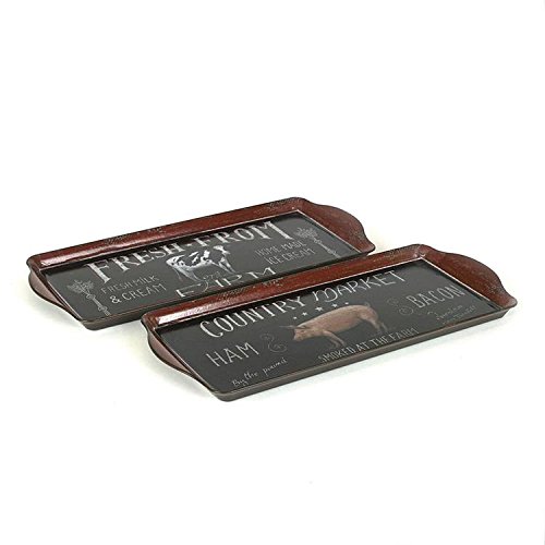 Set of Two 15-1/4"L X 6-1/2"W Decorative Heavy Plastic Trays with Farm Animal Images, 2 Styles