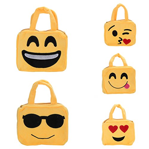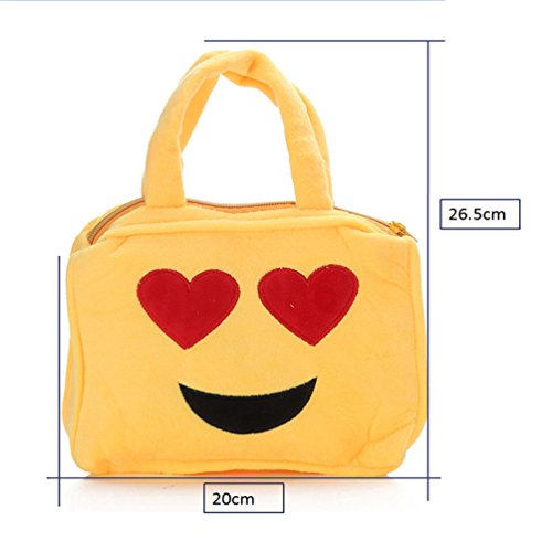 Studio : Yinpinxinmao Publisher : Yinpinxinmao Product Description Specifications: Type: Kids Handbag Gender: Unisex Material: Plush Lining Material: Polyester Open Method: Zipper Features: Emoji Design, Cute, Durable, Comfortable Size: 26.5cm x 20cm x 4.5cm/10.43" x 7.87" x 1.77" (Approx.) Notes: Due to the light and screen setting difference, the item's color may be slightly different from the pictures. Please allow slight dimension difference due to different manual measurement. Package Includes: 1 x Kids Handbag