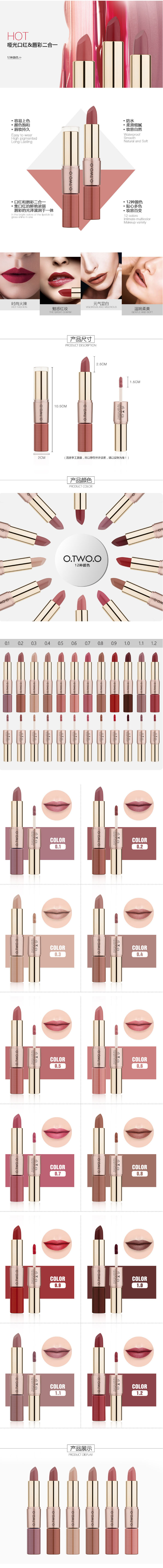 O.TWO.O Double-headed Cup Matte Lip Gloss Lipstick Combo 12 Colors