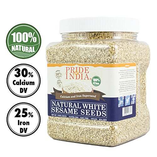 Pride Of India - White Sesame Seeds Unhulled - Calcium & Iron Superfood, 1.25 Pound (20oz) Jar