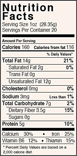 1.25lbs (20oz) Good to make 20 servings - Supplement with Yogurt, Smoothies, Salads, Shakes, or Eggs. Use ground flour of this mix with batter for baking and to make hummus/tahini.