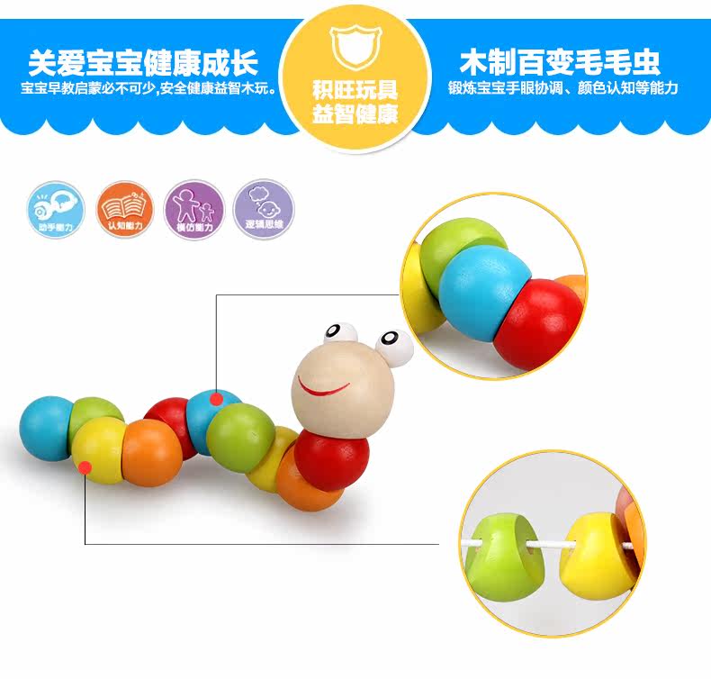 小虫子儿童串珠绕珠玩具10-11个月宝宝开发益智力玩具0-1-2-3岁